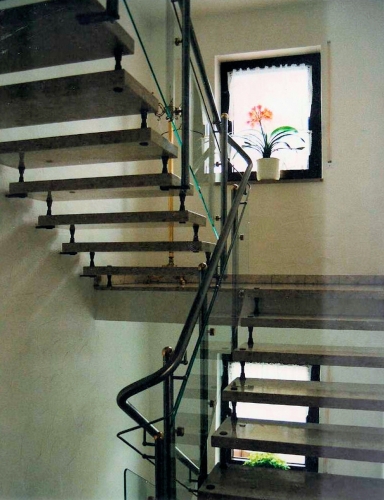 Treppengeländer 36 -2 Gallerie: Innen Geländer Beschreibung: Edelstahl - mit Sicherheistgläser - Edelstahlhandlauf mit Krämmling-Verbindung