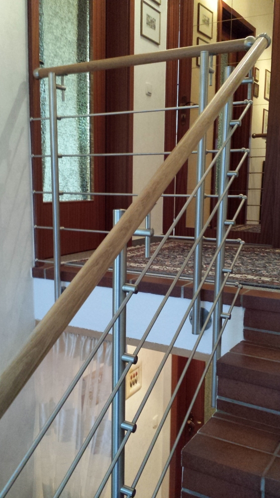Treppengelander 211 Gallerie: Innen Geländer Beschreibung: Edelstahlstützen mit eingeschraubten Stabhaltern durrchgeführte Stäbe - Holzhandlauf