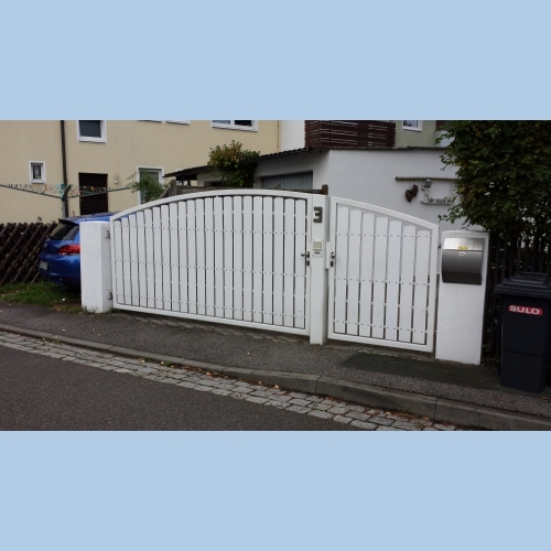 Einfahrtstor 2403043 hochgeladen: 4 Mar 2024 Einfahrtstor mit selbstschießenden Türflügel - motorisch betrieben Stahl - Alu - Kombination