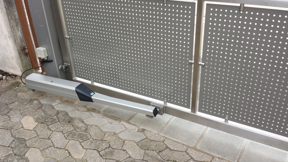 Tor 234 Gallerie: Tore Beschreibung: zeitloses Edelstahltor Elektro Schloss mit Motorantrieb Komet 600 , Tor mit integrierten Gehflügel