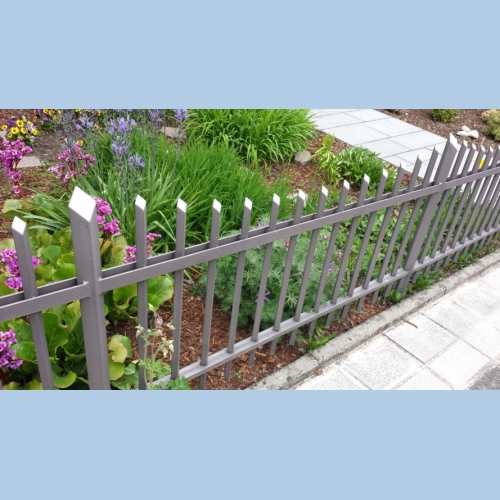 Zaun 211 hochgeladen: 18 Dec 2016 Feuerverzinkter pulverbeschichteter Zaun mit Flachstäben oben Schräg geschnitten