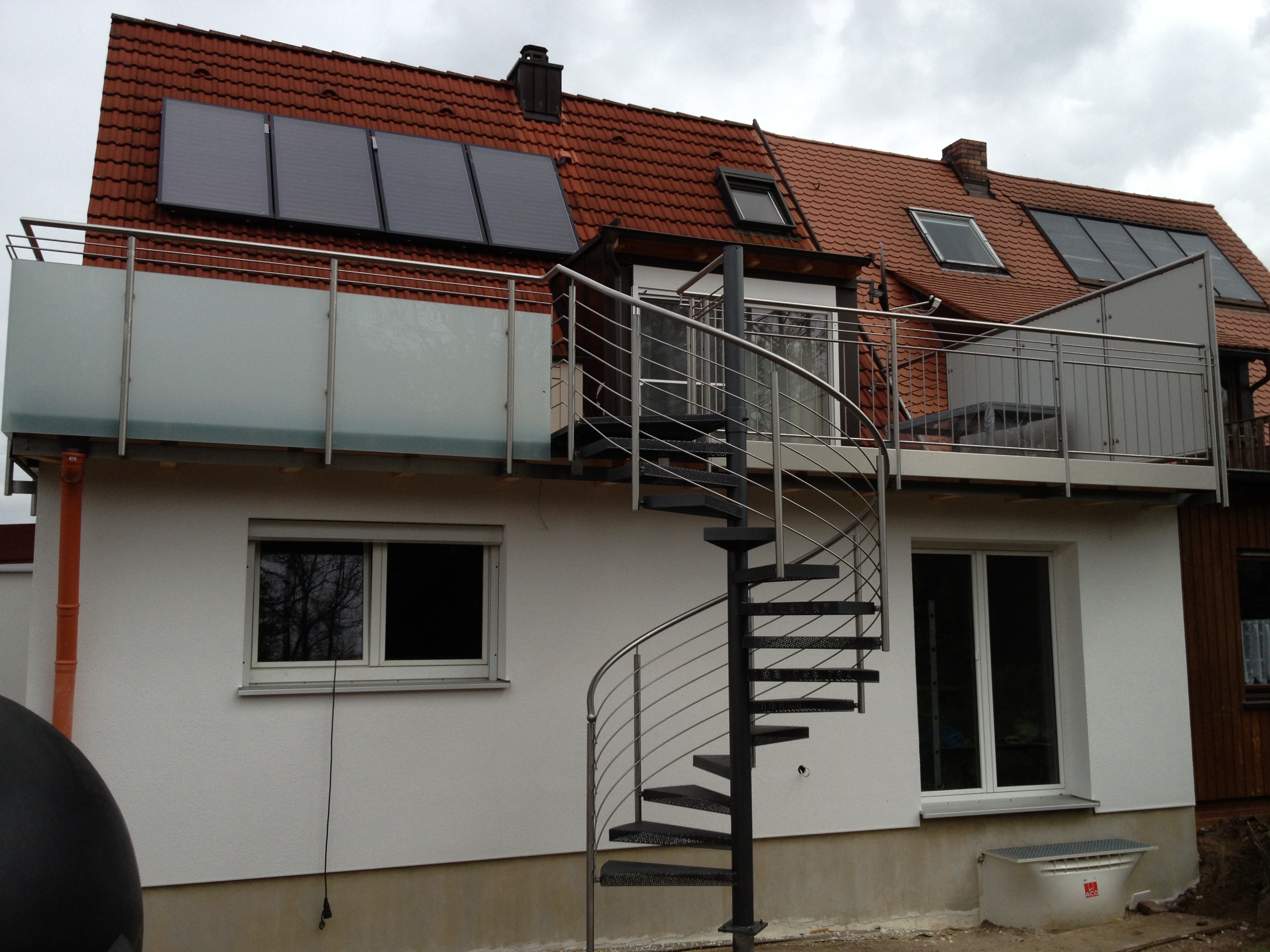 aussen Treppe 202 Gallerie: Aussen Treppen Beschreibung: Spindeltreppe mit gekanteten Lochblech Stufen, im Stück feuerverzinkt und lackiert , Edelstahlrelinggeländer