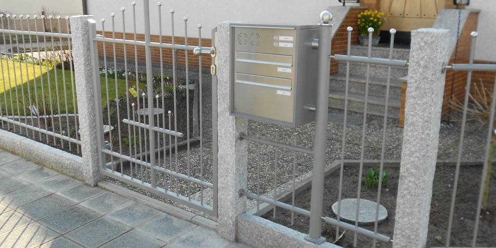 Tor 74-4 Gallerie: Zäune Beschreibung: Edelstahl Zaun / Tor / Briefkasten/ Müllbox